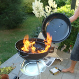 De første par dage nøjedes vi med engangs grill, men nu har vi anskaffet en rigtig kugle grill.